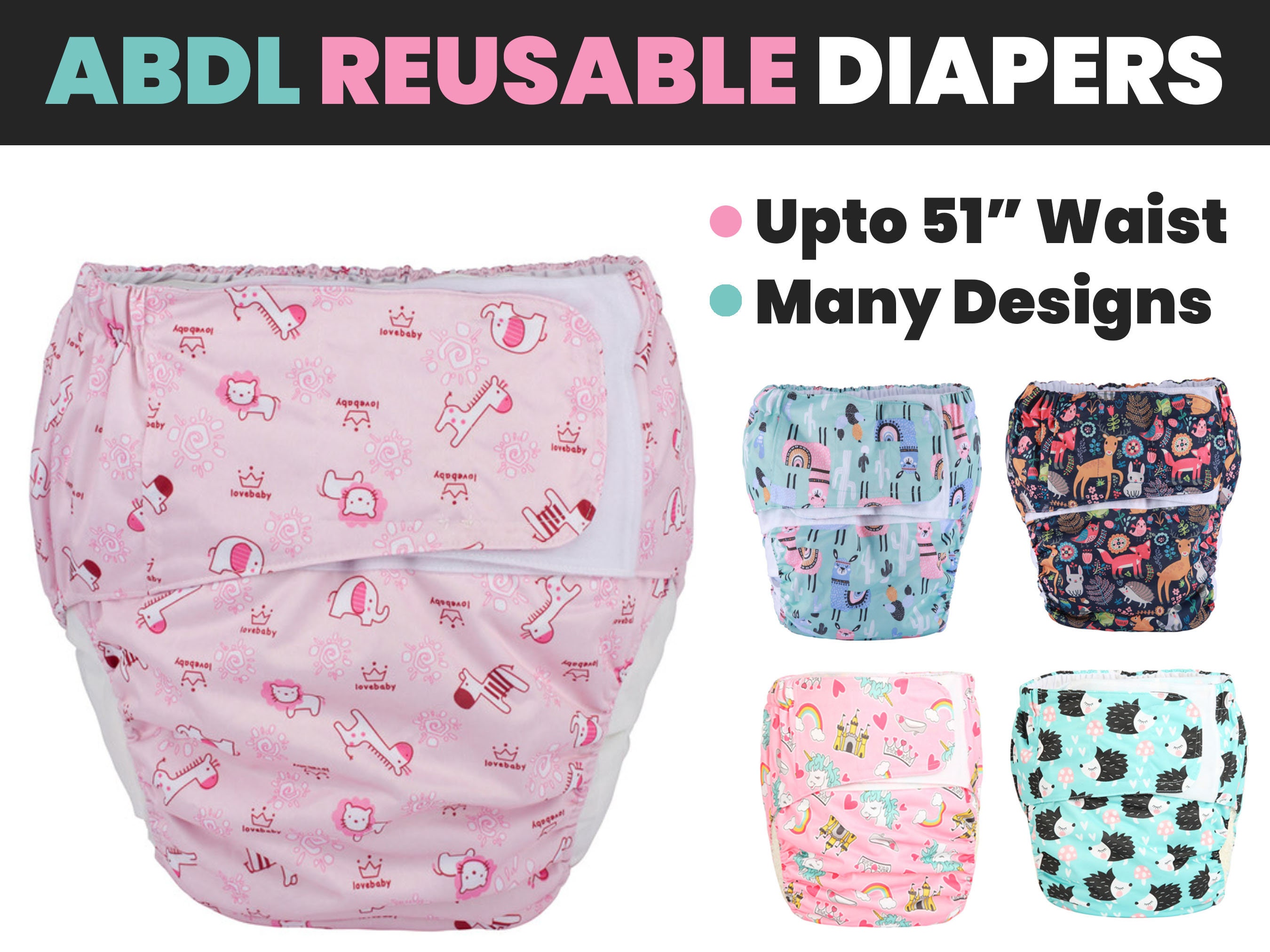 7pcs Abdl Adult Baby Diapers Cute Print Elastic Waist Pampers Diapers Ddlg Rainbow Week Disposable Diapers Pampers Pants 5 Cloth Diapers Aliexpress